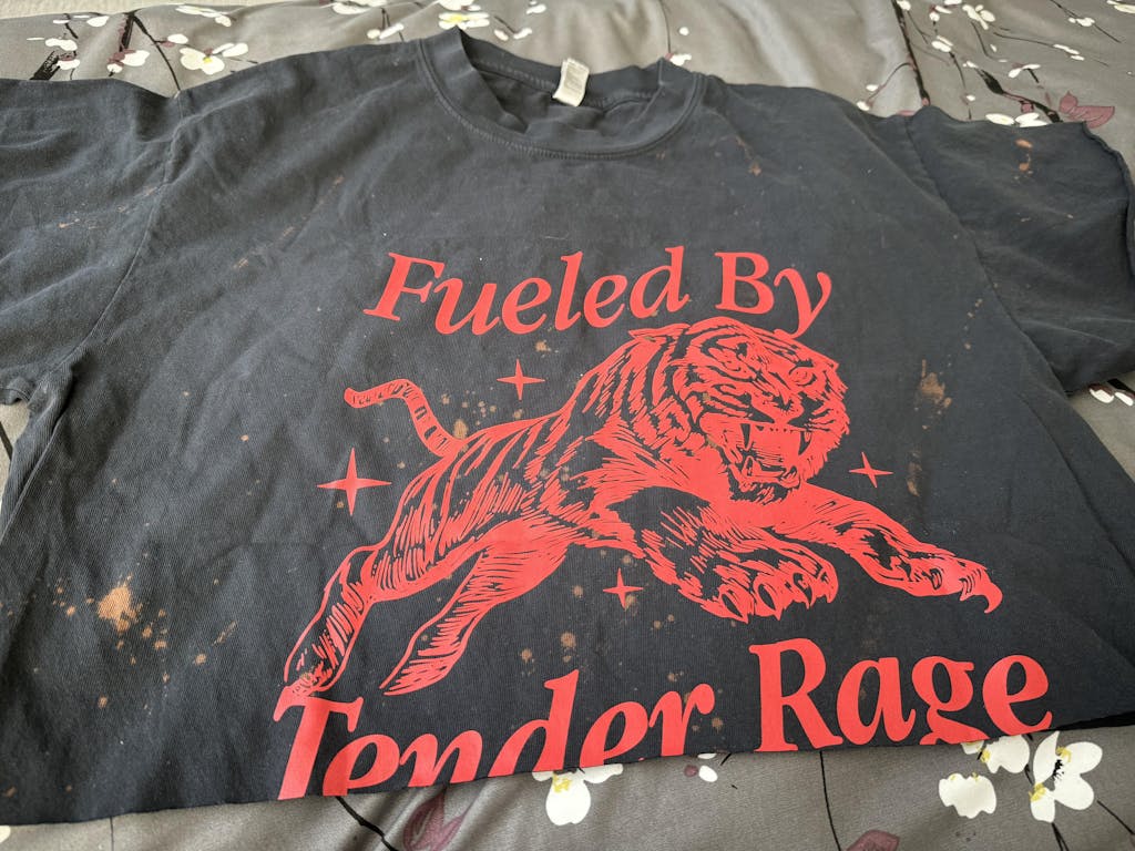 CROPPED FUELED BY TENDER RAGE BLEACHED OUT GRAPHIC TEE