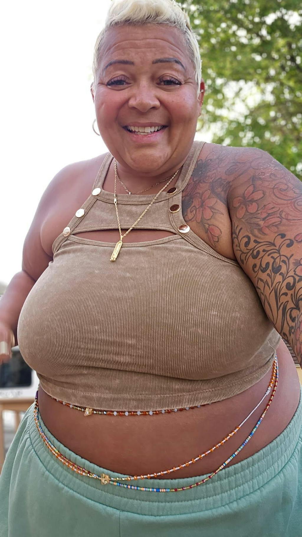 Pebby Forevee is the only midsize clothing boutique that makes staple and statement pieces that embrace and flatter people’s bodies through every part of their self-love journey. The tank features a unique high-neck design, gold hardware, and racerback straps to ensure a maximum level of support while offering a chic touch to your wardrobe. Perfect for layering or wearing solo, it's a versatile piece that transitions effortlessly from day to night. Whether you’re dressing up for a night out or pairing it with your favorite jeans for a casual look, this tank top is a must-have addition to your wardrobe.